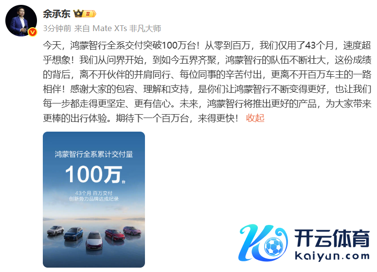 余承东:鸿蒙智行全系请托打破100万台余承东:鸿蒙智行全系请托打破100万台