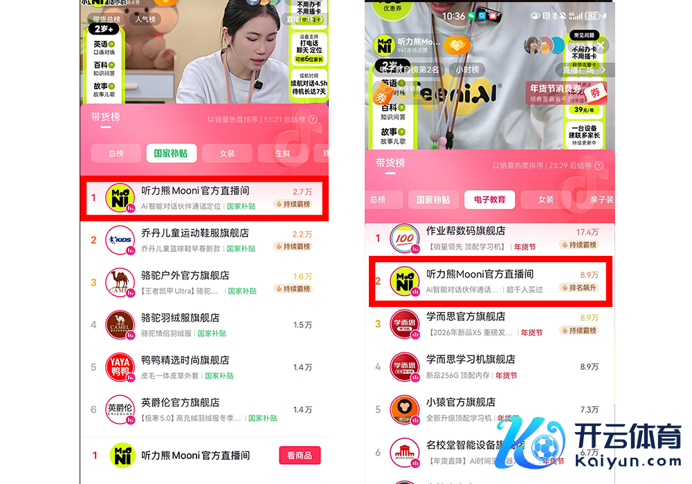 ▲Mooni M1登上抖音国度补贴带货榜Top 1、电子陶冶带货榜Top2