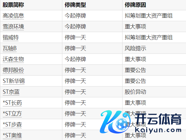 A股停牌请示:10股本日停牌开yun体育网A股停牌请示:10股本日停牌