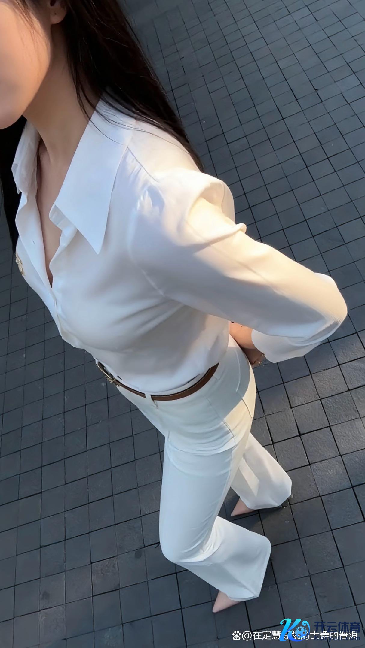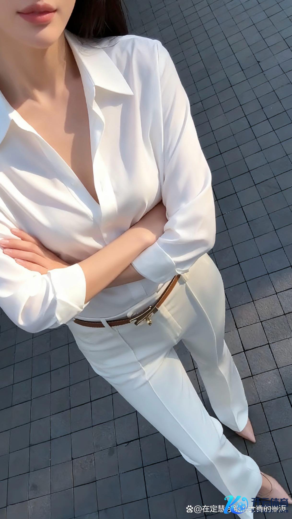 她身着一袭剪裁利落的纯白衬衫,如新雪般洁净无瑕,挺括的领口以精准的45度角傲然立起,恰似天鹅抬头时优好意思的颈项曲线。象牙白的西裤沿着她修长的腿部线条运动垂落,裤脚处用心计算的微喇造型跟着细高跟鞋的每一次落地,在光洁的大理石大地上划出优雅的曲线——这身地谈到极致的素色搭配,非但莫得显得单调,反而像一幅留白的东方水墨,以最克制的笔触勾画出最摄东谈主心魄的力量感。七厘米的漆皮高跟鞋将她的身姿拔高到极具压迫感的高度,鞋跟与大地碰撞发出的清翠声响,宛如古代战场上将领铠甲相击的铮鸣。当她迈步时,裤管与衬衫下摆变成的流动褶皱,恍若被疾风掠过的雪原,既带着北国冰棱的凛凛矛头,又蕴含着丝绸很是的柔韧张力。那束减轻挽起的低马尾跟着设施微微浪荡,发丝在阳光下折射出麦浪般的金色光晕,与通身的冷色彩变成奇妙的冷暖均衡。这身装束的每个细节皆在诉说着矛盾的好意思学:挺括的棉质与雅致的肌肤变成材质碰撞,禁欲系的领口计算与缺乏闪现的锁骨线条组成视觉反差,而那双踩着致命高跟鞋的纤足,既像随时准备发起迫切的芒刃,又保抓着芭蕾舞者般的狭窄身形。当她在会议室回身的短暂,阳光穿过落地窗为她镀上淡金色的概括,总计东谈主宛如一柄出鞘的唐刀开云体育,冷光内敛却矛头逃避。